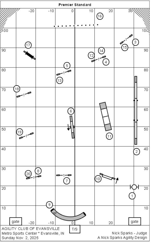 These exercises are based on #11 – #16 of this AKC Premier map by judge Nick Sparks.